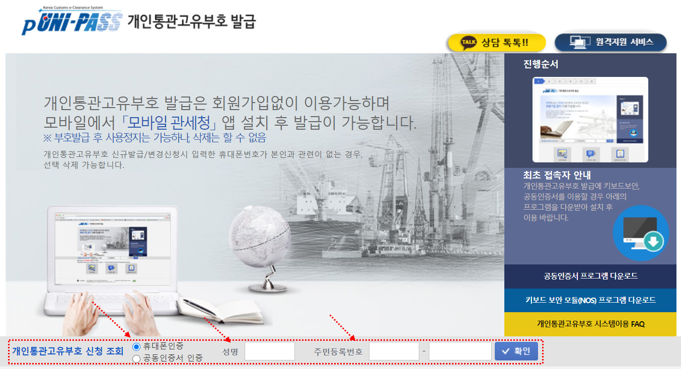1. 개인통관고유부호 발급은 회원가입이 필요없이 이용가능합니다.